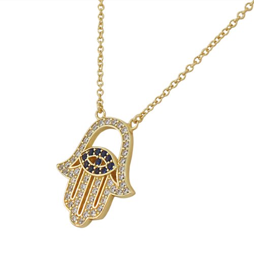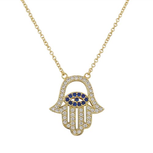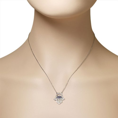 -. Title : 925 Sterling Silver Evil Eye Hamsa White Blue CZ Womens Pendant Necklace