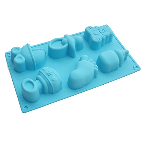 X-Haibei Baby Carriages Bottle Little Feet Bear Soap Mold Making Supplies Chocolate Cake Pan Silicone Shower Favor, Color may vary