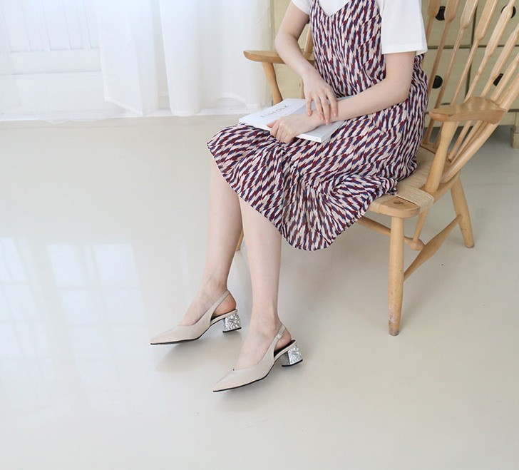 商品名:パンプス レディース ポインテッドトゥ 太ヒール スリングバック 2018 夏 ファッション 靴 婦人靴