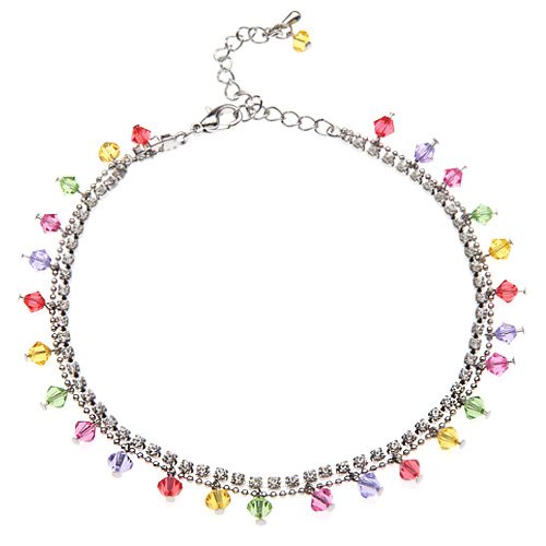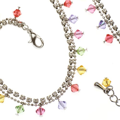 -. Title : Rhodium or Gold-Plated Brass Colored Faceted Swarovski Crystal and Cubic Zirconia CZ Anklet