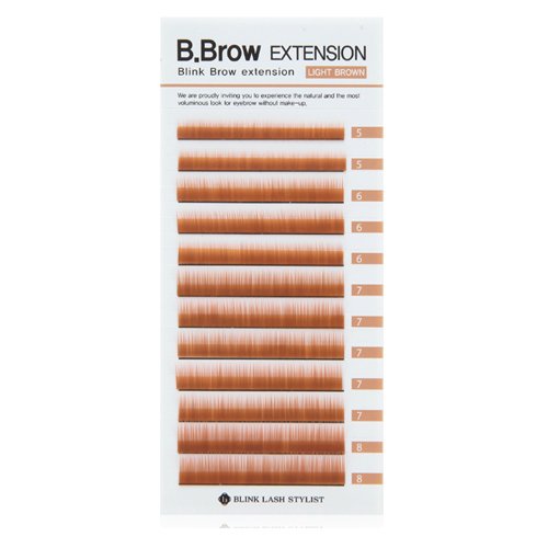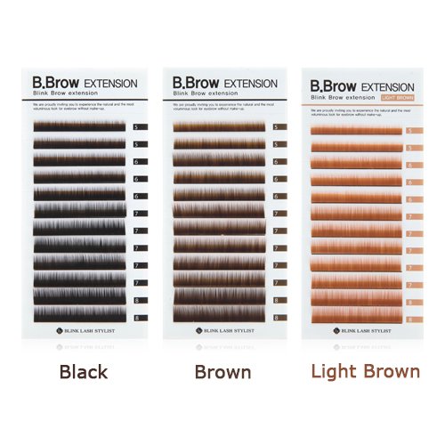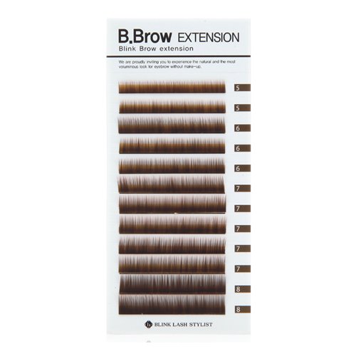 B.Brow Lash B.Brow Lash is very similar thickness and length to human eyebrow. So you can express your customer's eyebrow more naturally. It has a slight curl is to create the natural look in the way that natural eyebrows grow. (1~2 row 5 mm / 3~5 row 6 mm / 6~10 row 7 mm / 11~12 row 8 mm)Feature