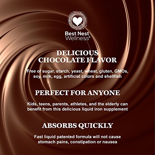 Studio : Best Nest Wellness Publisher : Best Nest Wellness Binding : Health and Beauty Product Description Best Nest Wellness Liquid Iron is a great tasting way to get your iron. Perfect for women, men, and kids alike, it has a distinctive chocolate taste that leaves behind no bitter taste, no unpleasant metallic aftertaste and generally no aftertaste at all! Our doctor formulated liquid iron supplement has the advantage of being naturally sweetened and does not contain all of the extra sweeteners that are so often found in other liquid iron. Perfect for adults, during pregnancy, breastfeeding, and pediatric needs. Unlike iron salts, this iron supplement does not ionize and helps to reduce many of the unwanted side effects such as constipation, stomach pain or nausea that is so often associated with iron supplements. Once your body absorbs its daily dose (15 mgs per serving), Best Nest Wellness Liquid Iron may also help with issues such as anemia, listlessness, fatigue, headaches, dizziness, dry skin, along with hair loss due to iron deficiency and more. Highly absorbed form for more energy and boosted red blood cells. Highest Quality Standards - Free of artificial colors and flavors, sugar, sweeteners, preservatives, gluten, soy, yeast, fish/shellfish, nuts, GMO, and dairy/lactose. - Manufactured in an NSF and GMP certified facility - Made in the USA 100% Satisfaction Guarantee - prepare to be wowed! We are committed to providing you with the very best multivitamin. WE SELL OUT FAST! Give Yourself Peace of Mind and Click "ADD TO CART" Now! 0