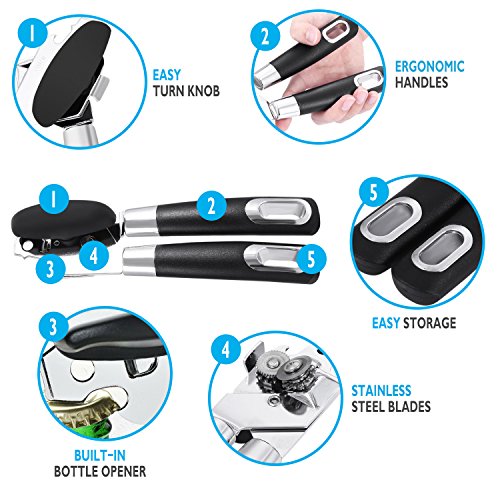 - HIGH QUALITY KITCHENWARE: Quiet, reliable and portable, this is a use-anywhere heavy duty can opener that doesn't require electricity; easy to use good grip can opener designed to serve for many years
