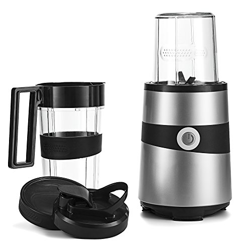 - Feature : Extracts nutrition from within food / Chop, blend , mix, grate, puree, shave ice / frozen fruits, grind meats, and much more / Breaks down seeds, stems, and skins of fruits and vegetables / Carbon Steel Blades and 1000W Motor / High torque power base comes with 7 Piece Set ( 6-fold blade / Milling Blade / Storage Lid / Spill-proof Drinking Lid / Lid Ring with Handle / Short Cup 350ml ( 11.8 oz ) / Tall Cup 600ml ( 20.2 oz ) / Manual with Recipes )