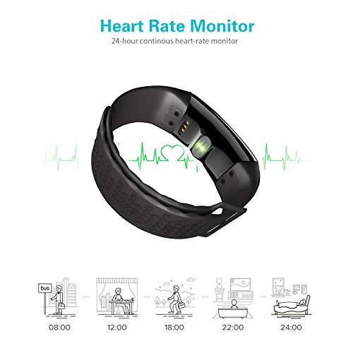 -. Feature : 【SMART BRACELET FUNCTION】: The sport fitness band can sync date and time, it has step,distance,calories counter, remote camera control,anti-lost, sleep monitor,heart rate monitor,alarm clock,message(Facebook, SMS, Twitter, etc) reminder,find your band. It has a waterproof rating of IP67(works under water up to about 1 meter) suit for swimming. / 【FASTIONAL DESIGN WITH OLED SCREEN】:Combined with fashion, sports and business with 0.96 inch OLED display screen. Click the touch screen button to easily read time, date, steps, calories, heart rate,etc. / 【MONITOR YOUR ACTIVITY LEVELS】:Track walking distance and calculate calories burned. Setting the daily exercise targets and working towards a healthier lifestyle! Monitor and record your heart rate in real time, help you plan the timing of your movements and the amount of exercise freely. / 【LONG BATTERY LIFE AND WIDE COMPATIBILITY】:Built-in low-power-consumption Bluetooth chip, sensor and 110mAh rechargeable battery. Full charge requires about 40 minutes and the standby time can be up to 15 days with full power. App supports most smart phones with Bluetooth 4.0 or above(not for tablet). / 【100% Satisfaction Guarantee】: We offer a 12-Month warranty to make you happy and satisfied with our product, If for any reason you're not completely satisfied, Please contact us via Amazon, excellence service will bring you a smile.