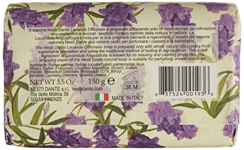 A natural, fragrant Italian cleansing bar. Formulated with vegetal ingredients and natural oils to gently cleanse skin. Contains an active ingredient of Lavandula Angustifolia for relaxing and calming properties. Leaves skin soft, fresh and beautifully fragranced. Suitable for perfuming drawers and linen. Free of mineral oils, parabens, petrochemicals, sulphates and synthetic surfactants. Hand-wrapped in paper with beautiful floral illustrations.Feature