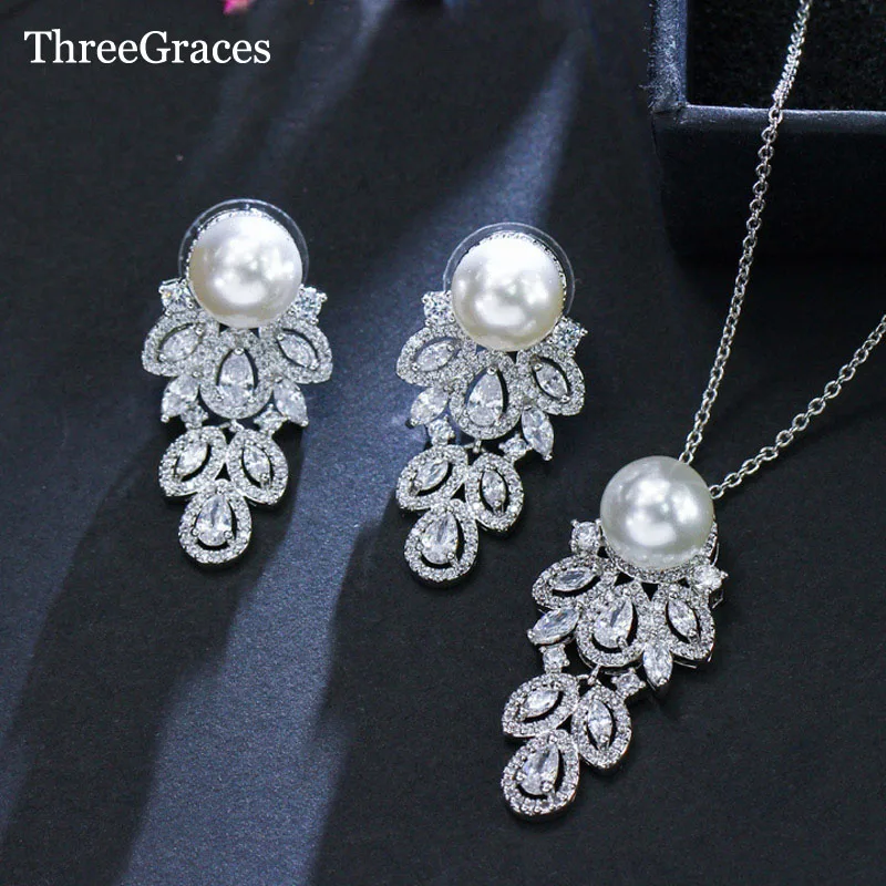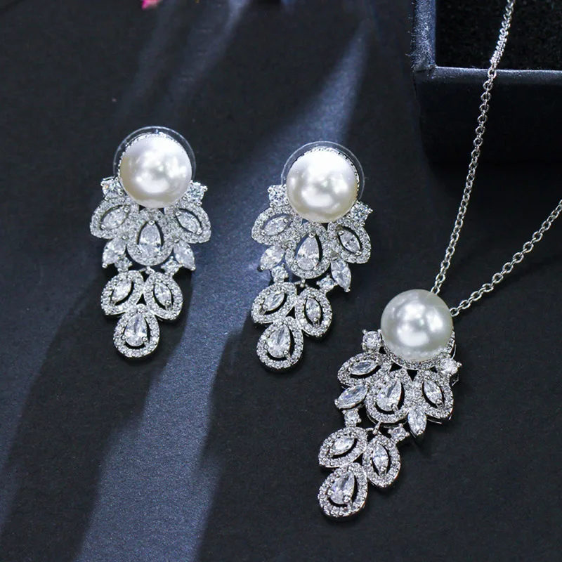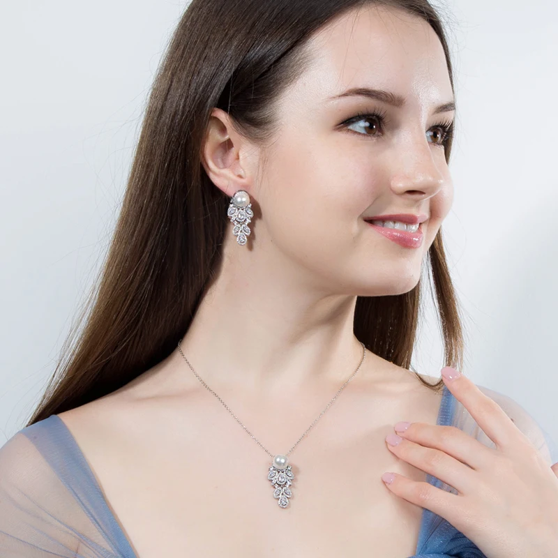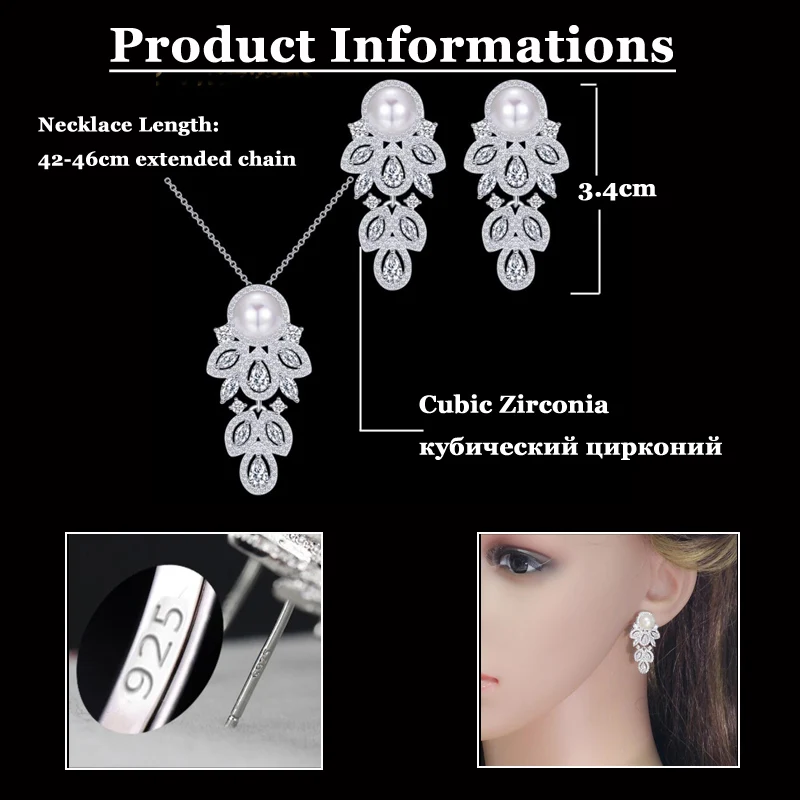 Type:Fashion Pearl Earrings Necklace Set Wedding Jewelry