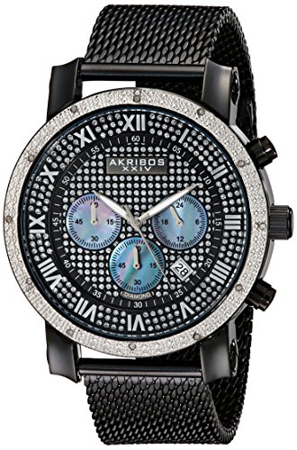 Studio : Akribos XXIV Publisher : Akribos XXIV Binding : Watch Product Description This men's stainless steel watch from Akribos XXIV is a brilliant versatile watch with a chronograph movement. With the mesh bracelet, three Mother-of-Pearl sub dials and 12 genuine diamonds on the bezel this watch is sure to add to remarkable look. 0