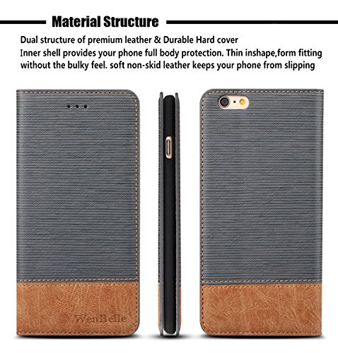 iPhone 6s Plus 5.5" Wallet case,WenBelle [Blazers Series] Wallet-Style,Stand Feature, isal Fabric and Leather-Look Design Wallet Cover Flip Cases For Apple iPhone 6 Plus / 6s Plus 5.5 inch,Grey