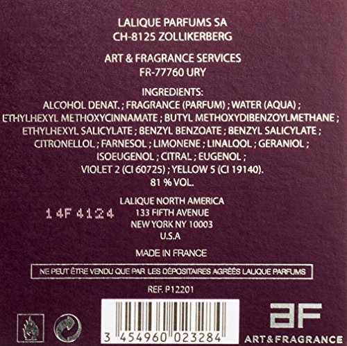 Buy Lalique Women's Perfumes - Amethyst by Lalique for Women 3.3 oz Eau de Parfum Spray. How-to-Use: For long-lasting effects fragrance should be applied to the bodys pulse points. These include the wrist, behind the ear, crease of your arm and knee, and the base of your throat. Pulse points give off more body heat as this is where blood vessels are closest to the skin, therefore continually warming and releasing your fragrance. Also, for a lasting effect spraying fragrance lower on the body al