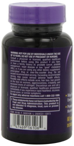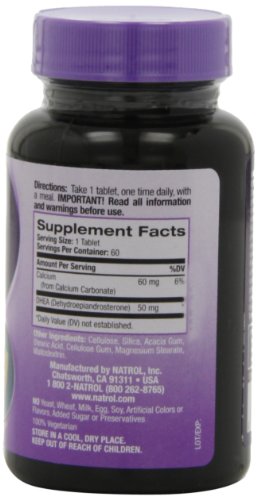 Dietary Supplement. HPLC Verified. Balances DHEA levels. Helps enhance energy. Anti-aging precursor. No yeast, wheat, corn, milk, egg, soy, glutens, artificial colors, added sugar, starch or preservatives. (These statements have not been evaluated by theFeature