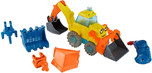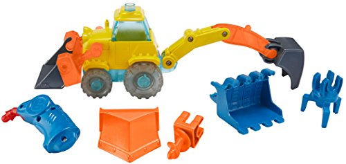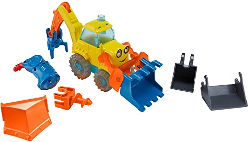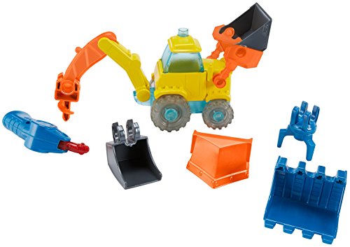-. Feature : Customizable Scoop vehicle with easy snap on snap and snap off attachments / Includes 6 total clip-on attachments: 2 front buckets, a plow, back bucket, claw, and auger / Includes 4 translucent tires that can be arranged in any formation / LED welding torch features lights and sounds when tip is pressed to a surface / Use the welder to pretend to repair Scoop and watch the light diffuse through the tires