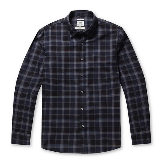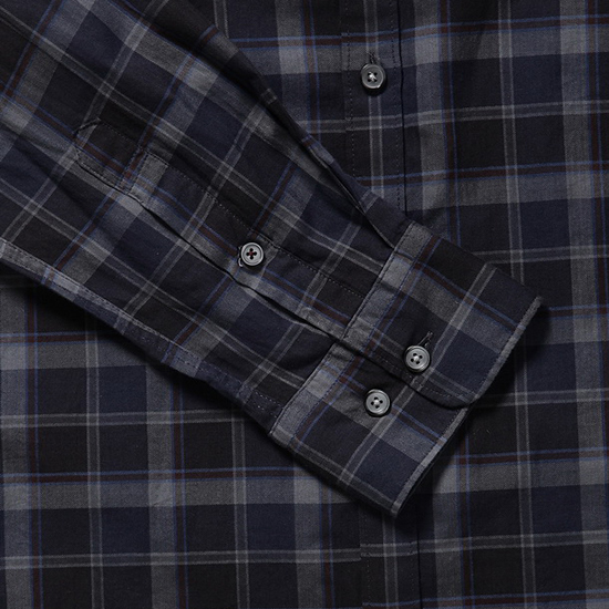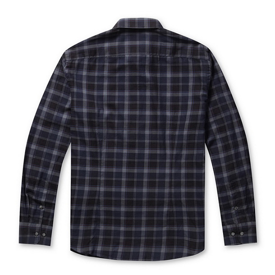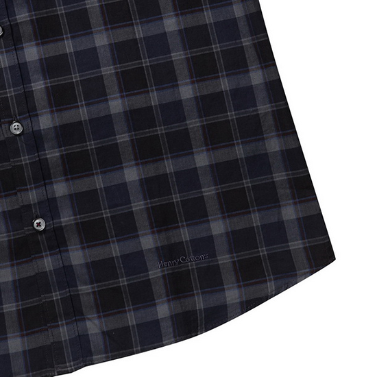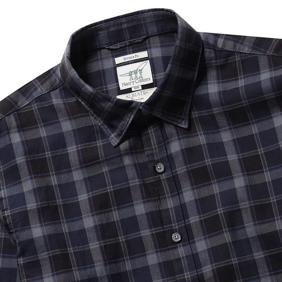- 헤링본 바탕에 체크 패턴을 입힌 클래식한 남성 셔츠.