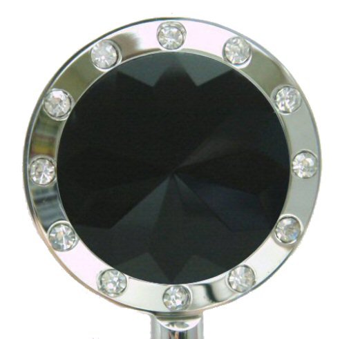 Product DescriptionThis crystal classic hook features a 20 clear crystal border on a silver frame. A non-slip base holds the hook securely on the table. A velor carrying pouch is included.0
