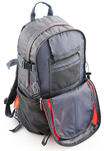 Front compartment has organizer with media pocket, multiple open pockets