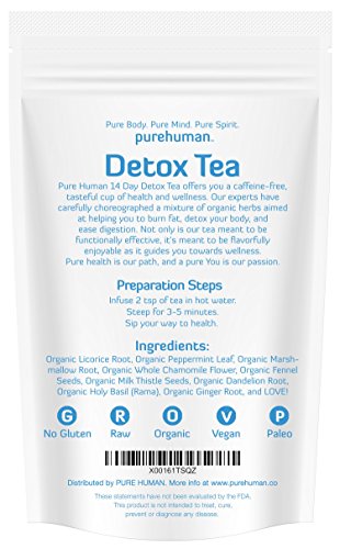 Pure Human 14 Day Detox, Weight Loss Tea, Liver and Colon Cleanse + Digestion Support + Great Taste + Caffeine Free + Herbal + Organic