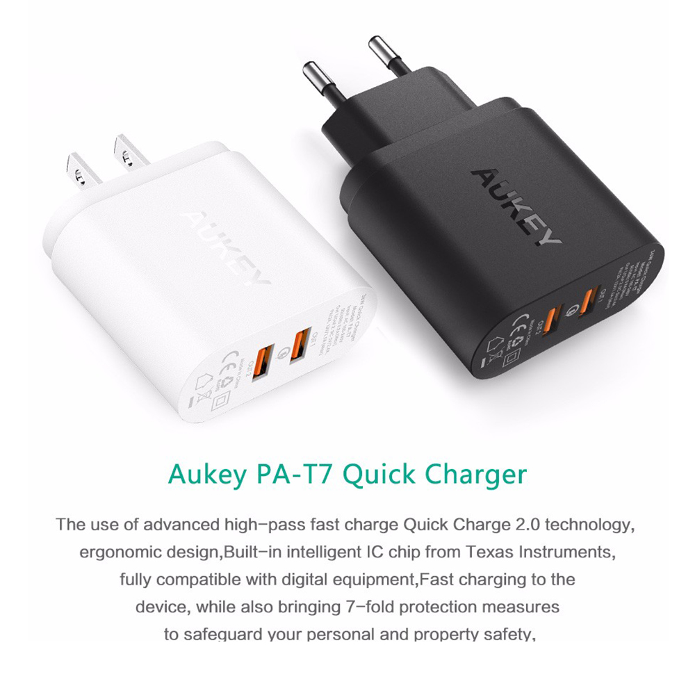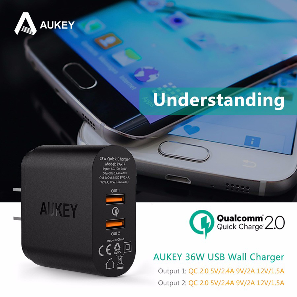 - AUKEY wall chargers compatible with Qualcomm Quick Charge 2.0 Technology charge devices up to 75% faster than standard chargers.