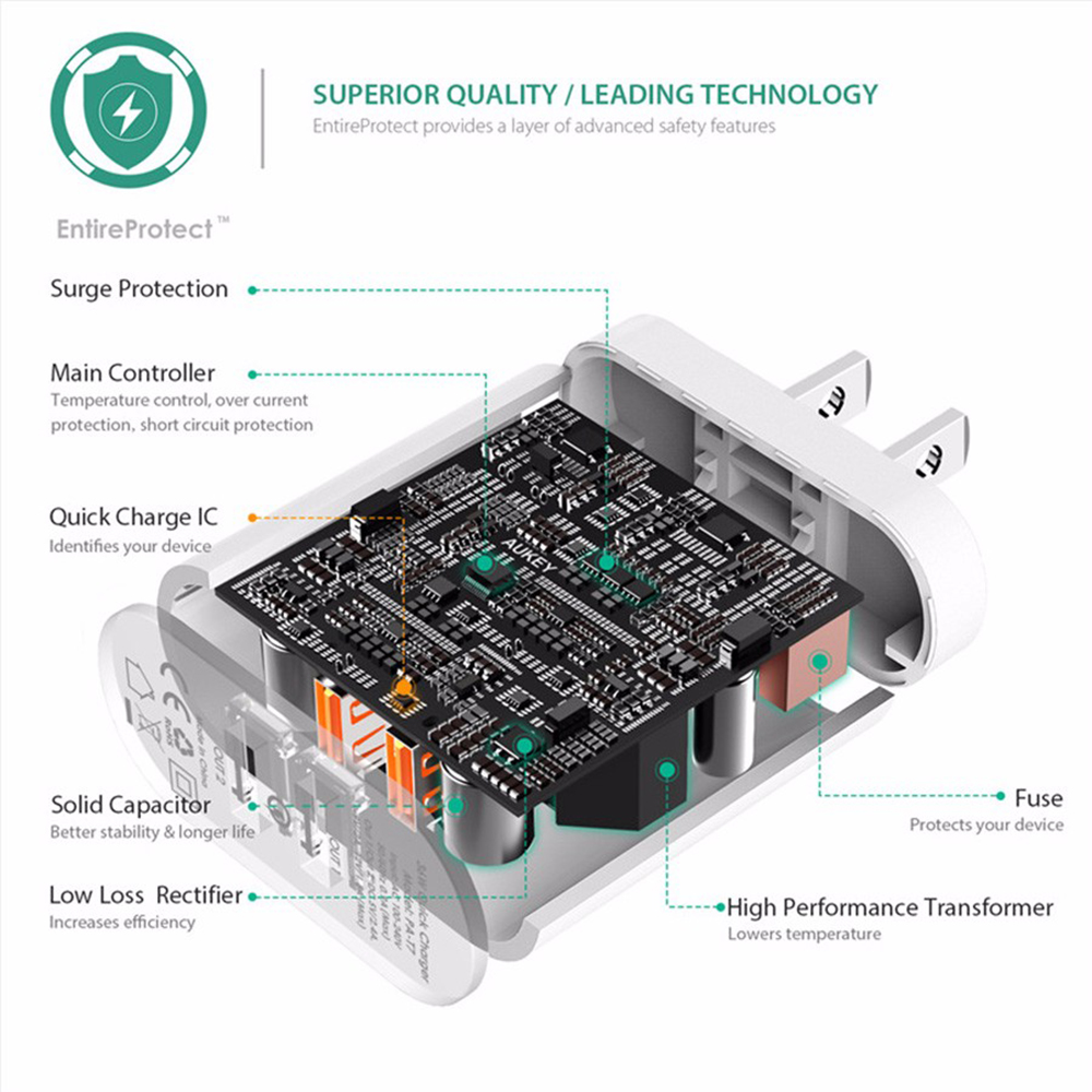 - AUKEY's Qualcomm Quick Charge 2.0 compatible chargers integratew industry grade materials with premium circuitry to ensure the safest, fastest charging experience at all times.