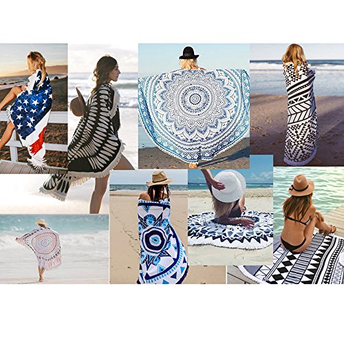 FASHION 21 Premium Large Round Heavy Thread Tassel Fringe Cover up Beach Towel Yoga Mat in Many Styles (Style # 5)