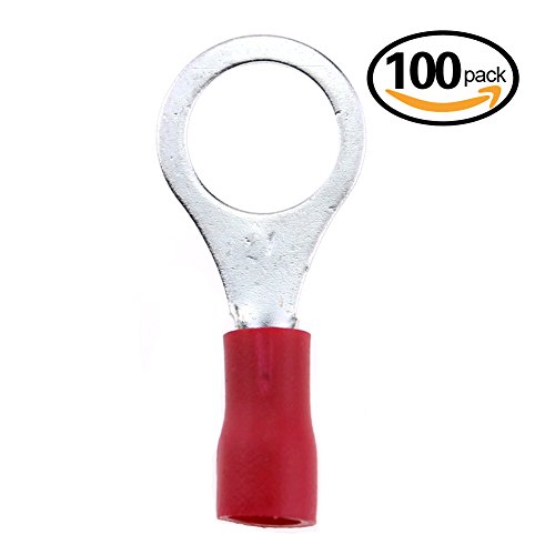 Hilitchi 100pcs 22-16 Gauge Ring Insulated Electrical Wire Terminals Wire Crimp Connectors (M8, Red)