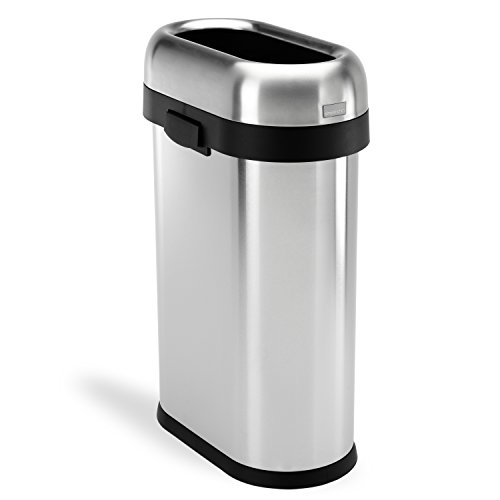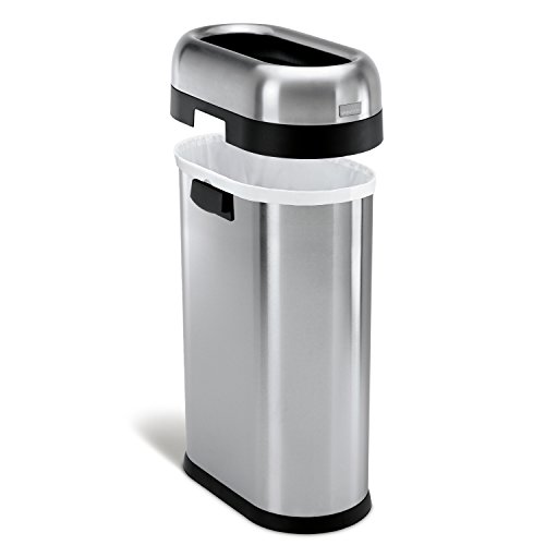 simplehuman Slim Open Top Trash Can, Commercial Grade, Heavy Gauge Stainless Steel, 50 L / 13 Gal
