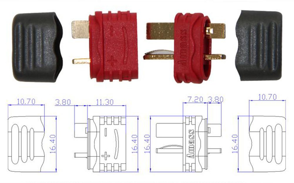 The Dean's type connector reputed with RC, the T type 2P connector is a high performance connector with excellent resistance value, the metal contact part is high quality pure copper 24k gold plating.