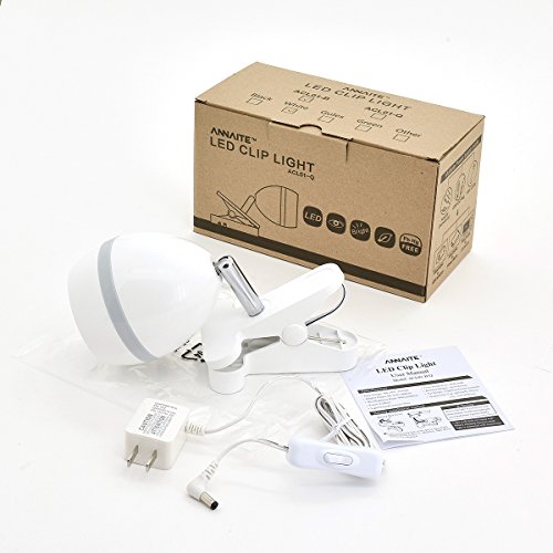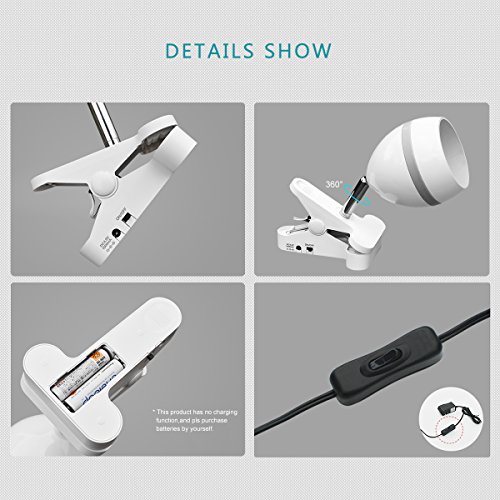 ANNAITE Cilp on Light, 360° rotation Clip on Lamp Portable Book Reading Light,Clamp on Desk/Table/Bunk Bed/Cupboard Lighting,Battery Operated/ Plug in/USB-Grey White