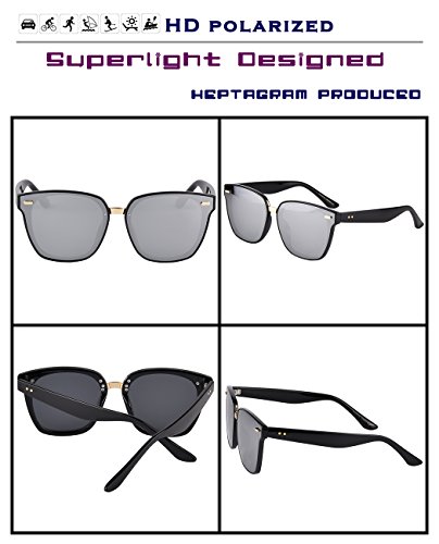 Heptagram TR90 Unisex Wayfarer Sunglasses with 7 Color , Polarized 100%UV Protection sunglasses (Black/Silver)