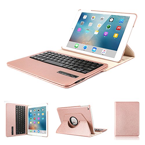 -. Title : 2017 New iPad 9.7 Keyboard Case, KVAGO Stylish 360 Degree Rotating Swivel Case with Detachable Wireless Bluetooth Keyboard Case for New iPad 9.7 Tablet - Rose Gold