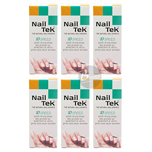 -. Binding : Misc. -. Brand : Nail Tek -. EAN : 4861573191528 -. Feature : Nail Tek 10-Speed is the fast way to dry polished nails to a smooth shiny, hard finish. 10-Speed will thoroughly dry polish, leave the nails shiny and condition the cuticles. 10-Speed is applied over freshly polished nails and top coat to accelerate drying time and to prevent smudging. Made in USA Warnings Keep away from heat and flame. Keep out of reach of children. Harmful if swallowed. Avoid eye contact. Harmful by inhalation. -. MPN : B00XPVU9MA -. PartNumber : B00XPVU9MA -. ProductGroup : Beauty -. ProductTypeName : BEAUTY -. Size : 0.5 Ounces -. Title : Nailtek 10-Speed Polishing Drying Drops, 0.5 oz 6 PC
