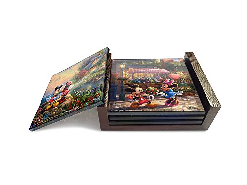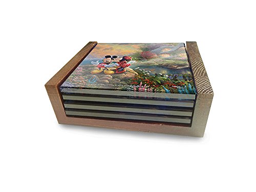 -. Title : Disney's Mickey and Minnie Mouse (Sweetheart Collection) StarFire Prints Glass Coaster Set (4 Piece with holder) - Thomas Kinkade Artwork