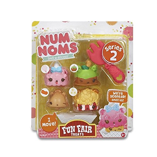 Mix and match Num Noms to create sweet, scented recipes! Collect over 100 Num Noms in Series 2! Nums are adorable, scented, squishy characters with tons of personality. Noms are scented and motorized! Stack the Nums on top of the Noms to make over 5,000 sweet scented combinations. Build up your appetite with the Num Noms Diner Pack. Create wacky flavor recipes like Pickle Burger! Includes 3 Nums, 1 motorized Nom, 1 spatula, 1 food tray container and 1 collector’s menu. Product Features •Series 2 •3 Scented Diner Nums: Melty Burger, Frenchie Fries, Cassie Cola •1 Scented, Motorized Nom: Pickly Go-Go •Create wacky flavor recipes like Pickle Burger! •Look for Special Edition Num Noms •Includes collector's menu, food tray container and spatula accessory •5,000+ mix & match combos! Collect them all •Ages: 3+ yearsFeature