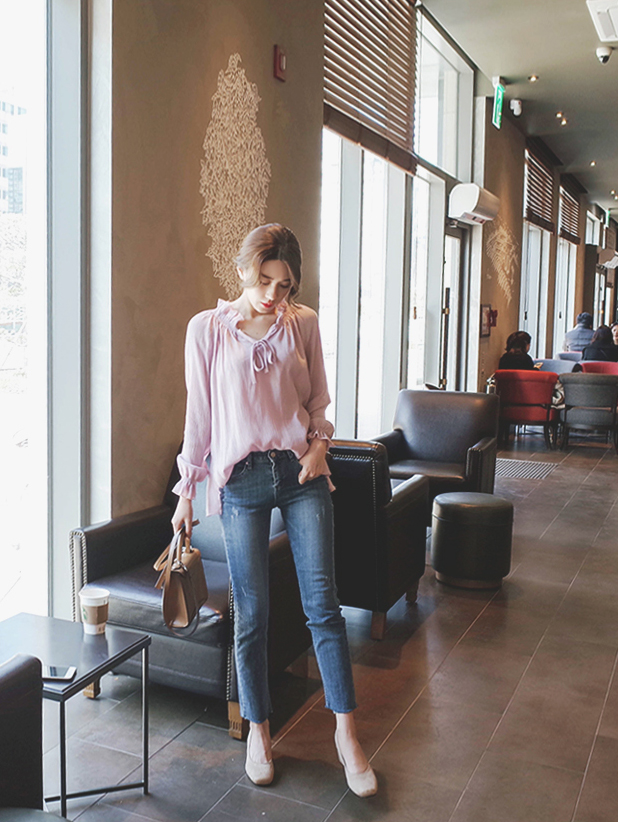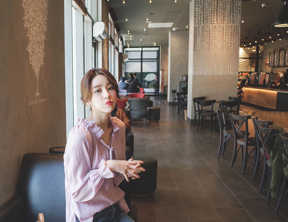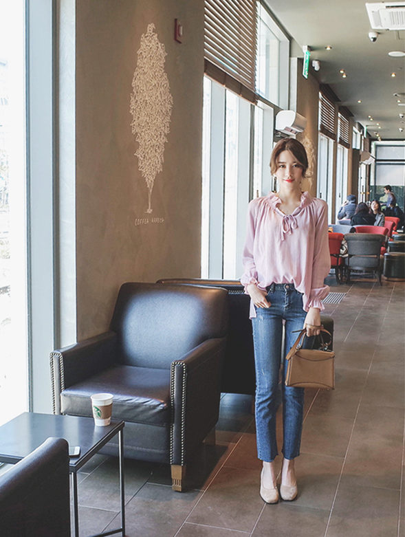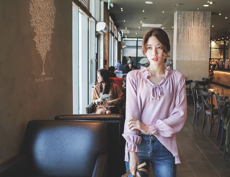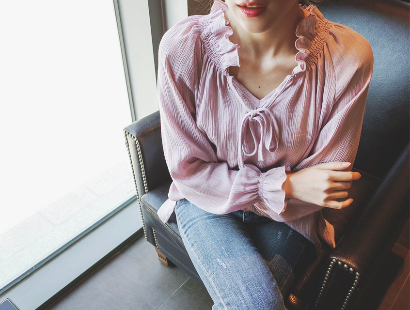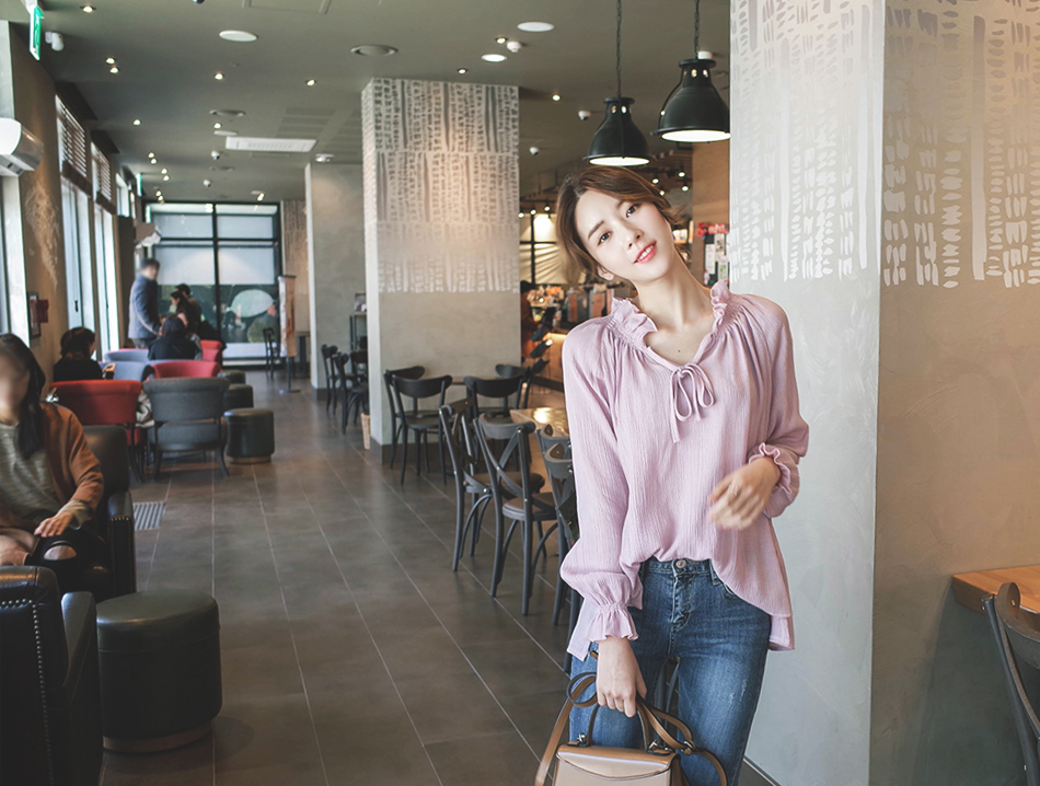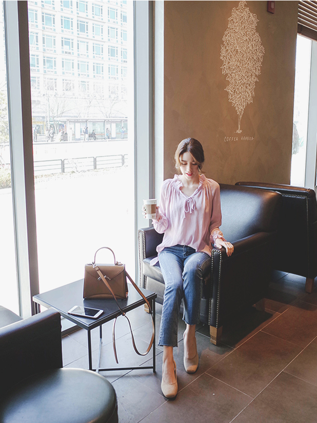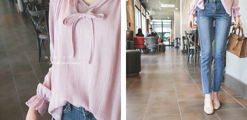 넥라인으 프릴과 리본이 포인트가되어 러블리함을
