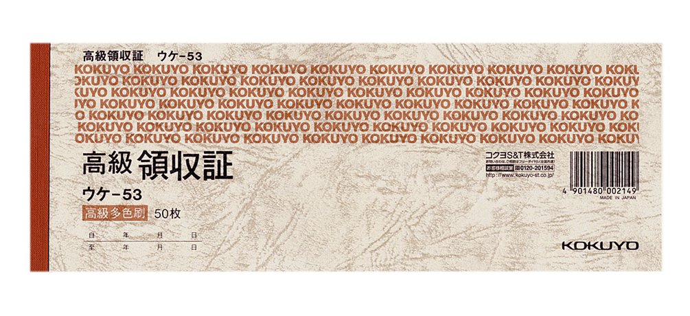 Kokuyo luxury receipt horizontal horizontal check-format multi-color 50 sheets uke -53