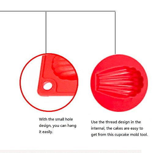 -. Title : Woreach 20 Shell Silicone Muffin Pans -- Red Baking Pan Mold -- Non-Stick Cupcake Mold
