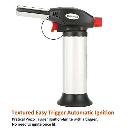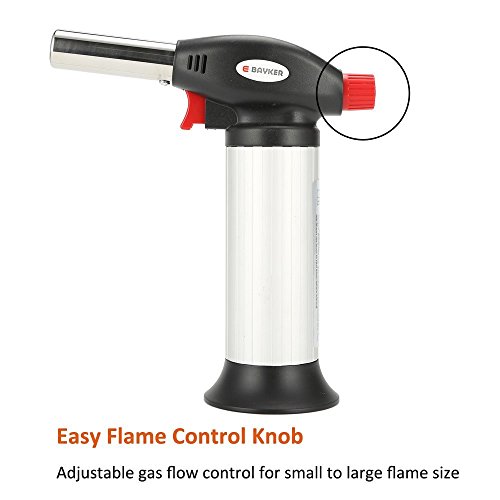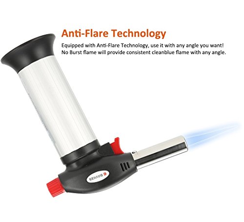 Cooking Torch, E-BAYKER Refillable Culinary Torch Anti Flare Kitchen Butane Creme Brulee and Food Torch Burner with Adjustable Flame for Home Cooking and Professional Use(Butane Gas Not Included)