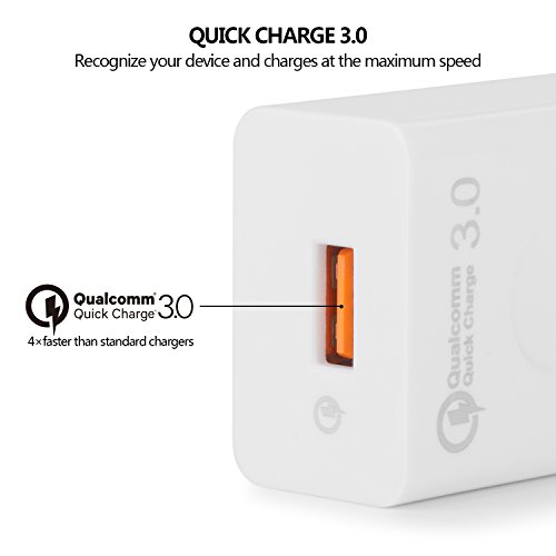 Qualcomm quick charge 3.0 technology certified USB wall charger.