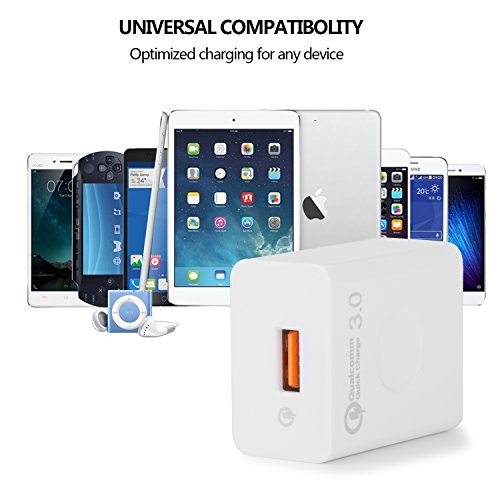 USB Wall Charger with Quick Charge 3.0, TIKONO Quick Charger for Samsung Galaxy S7/S7 Edge/S6 Edge/Plus, Note 5, LG G4 / V10, Moto X, HTC and more | Qualcomm Certified (white)