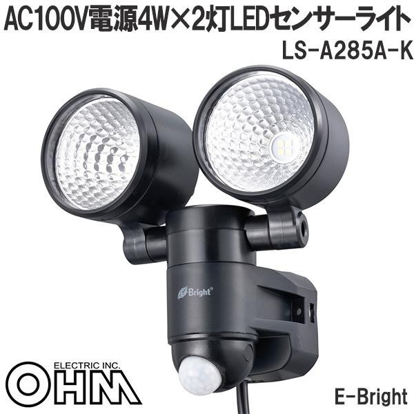玄関、通路や階段、ガレージなどの明かりが欲しい場所に。角度の調節が可能なので、検知したい方向にセンサーを向けてご使用いただけます。 製造国:中国 仕様:保証期間:1年間 ※サプライヤー直送品 ご注文後2~3営業日後の出荷となります【商品名】OHM E-Bright AC100V電源4W×2灯LEDセンサーライト LS-A285A-K