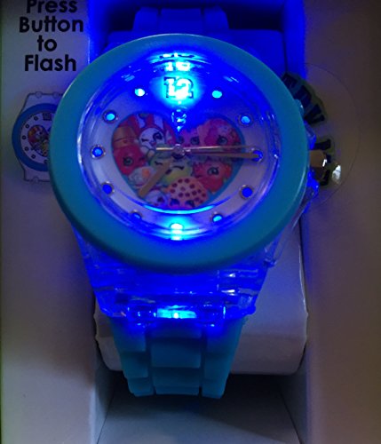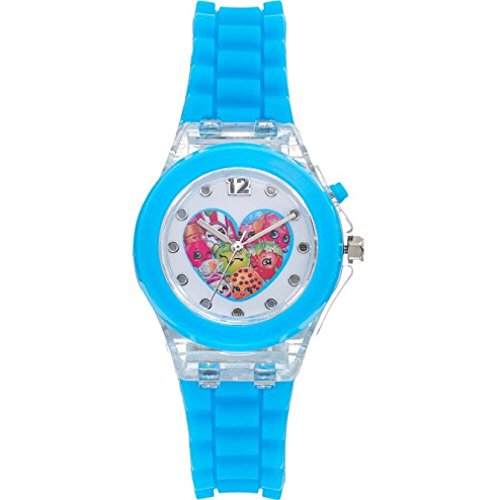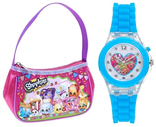 Studio : Global Design Concepts Publisher : Global Design Concepts Binding : Toy Product Description Their favorite Shopkins characters come to life with girls purse and light up watch set. The carry purse and watch set is made for a toddler or small child. The perfect gift set for any Shopkins fan. The purse measures 8" and features Kooky Cookie, Poppy Corn and more characters from Shopville. The kids watch will pulse with multi color flashing lights at the push of a button. Includes 60 second countdown timer with time and date display. A great birthday gift, valentines gift, holiday gift or just because. Ages 3 and up. 0