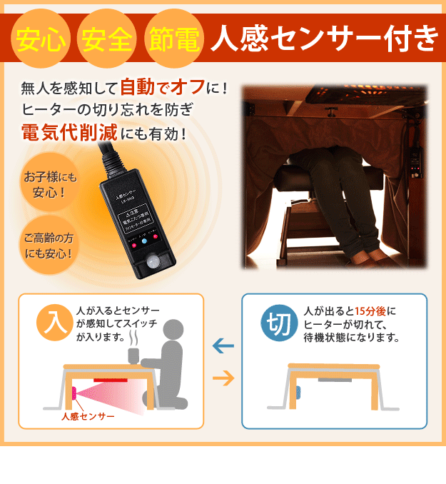【人感センサー付】薄型石英管ヒーター(600W・中間スイッチ式)、コード長3m