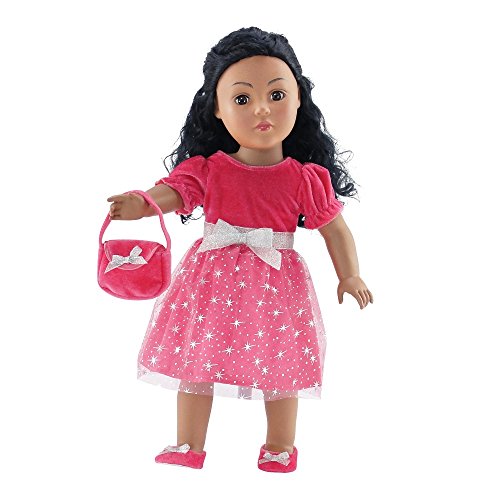 -. Title : 18 Inch Doll Clothes | Pink Holiday Dress Outfit with Silver Stars, Includes Velvet Shoes and Purse | Fits American Girl Dolls