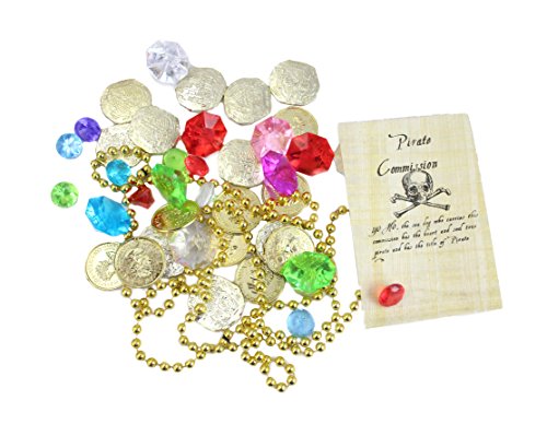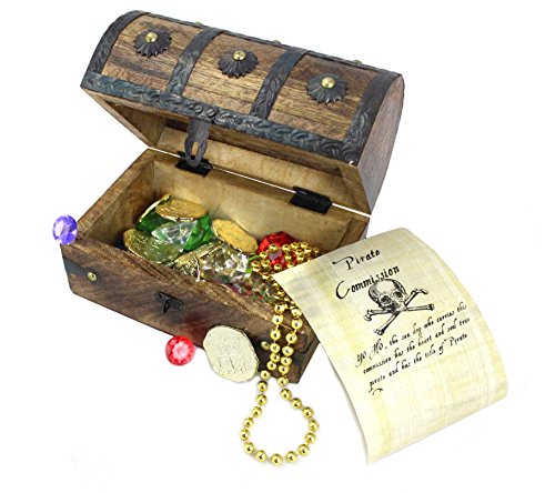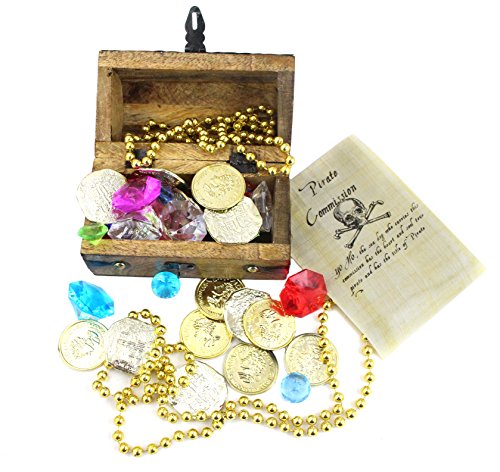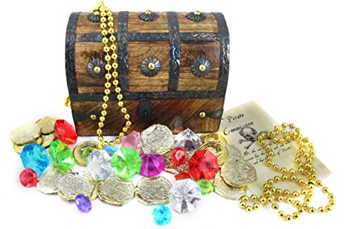 (Well Pack Box)/Nursery/Furniture/DIRECT FROM USA/WellPackBox Wood Toy Large Treasure Chest Box 10 Gold Coins 20 Gems Jewels 1 Necklace and Pirat...