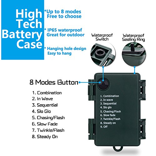 Multi Modes Multi Happy ? There are 8 different light modes including Wave, Sequential, Chasing, Fade, Twinkle, Steady On, etc. Allow you to enjoy different light show, not a single day is boring day with this wonderful fairy lights.
