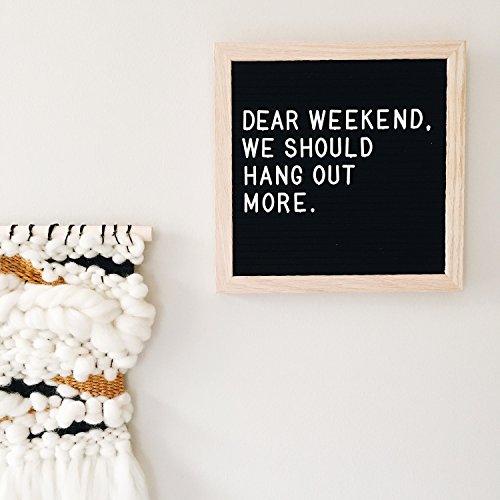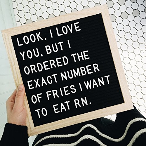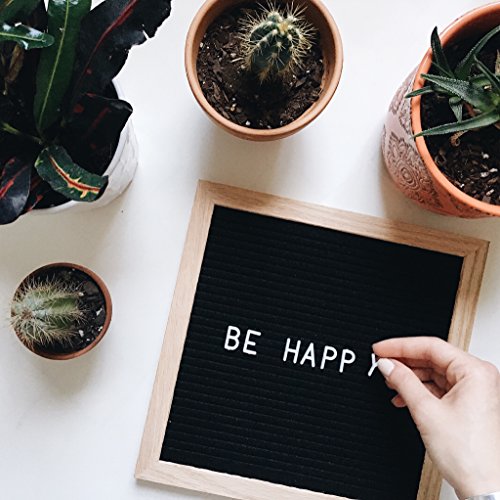 Best Felt Letter Board Sign Set with 290 Letters - 10 x 10 inches - Create Custom Messages - Changeable Black Felt with White Letters - Oak Wood Framed - FREE Canvas Bag and Canvas Stand