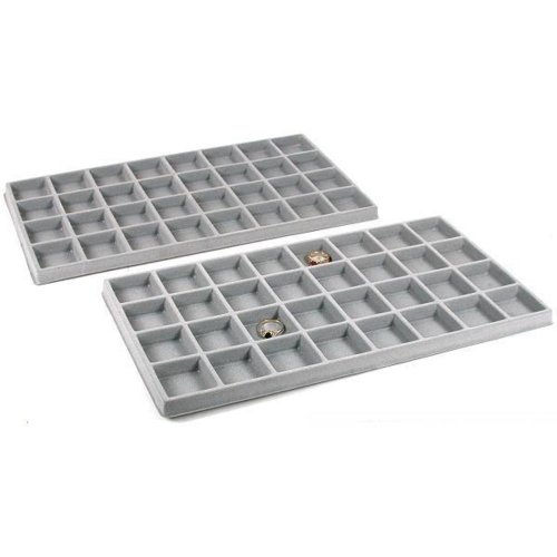 -. Feature : This is a new set of two 32 compartment gray flocked tray inserts / With these inserts you are able to keep components, findings or small jewelry pieces organized and visible / Easily remove the tray from the showcase to allow customers to view your jewelry from the countertop / Each compartment measures approximately 1 1/2" x 1 5/8" (38 x 40 mm) / Each insert measures approximately 14 1/8" x 7 5/8" x 1/2" (35.8 cm x 19.2 cm x 12 mm)
