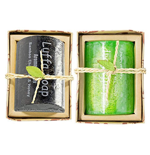 SET SAIBUA HANDMADE SOAP LUFFA SOAP AROMA BAMBOO CHARCOAL GREEN TEA & HONEY SCRUB HERBAL NATURAL 100G