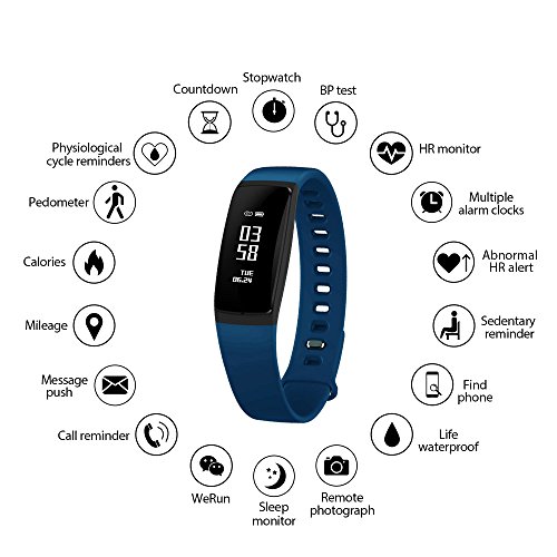 -. Title : K-berho Fitness Tracker with Heart Rate Monitor Blood Pressure Running Pedometer Smart Bracelet Bluetooth Waterproof Message Push for IOS & Android
