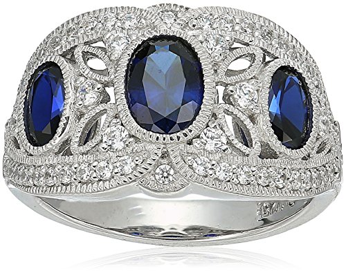 -. Title : platinum plated sterling silver oval-cut created sapphire 3-stone swarovski zirconia accents ring, size 6