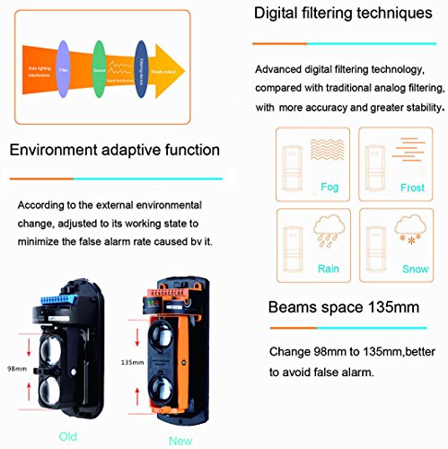 -. Feature : Digital frequency conversion / Easy alignment with visual LED indicator. / Adopt microprocessor control(CPU), real digital circuit. / Full time NC/NO relay output, compatible with other brand burglar alarm systems such as HONEYWELL, BOSCH, Paradox, GE and DSC, etc. / Built-in automatic adjustable strong light filtering system (up to 50,000 LUX), Good performance against direct sunlight, completely against fluorescent and car light.